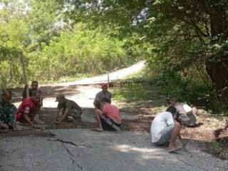 Bangli – Babinsa Desa Sukawana, Sertu Nyoman Budiarta, Koramil 1626-04/Kintamani, melaksanakan gotong royong bersama warga masyarakat Desa Adat Sukawana di areal Pura Puncak Penulisan. Kegiatan ini dilaksanakan dalam rangka persiapan upacara piodalan Purnama Kapat. Minggu (28/09/25)