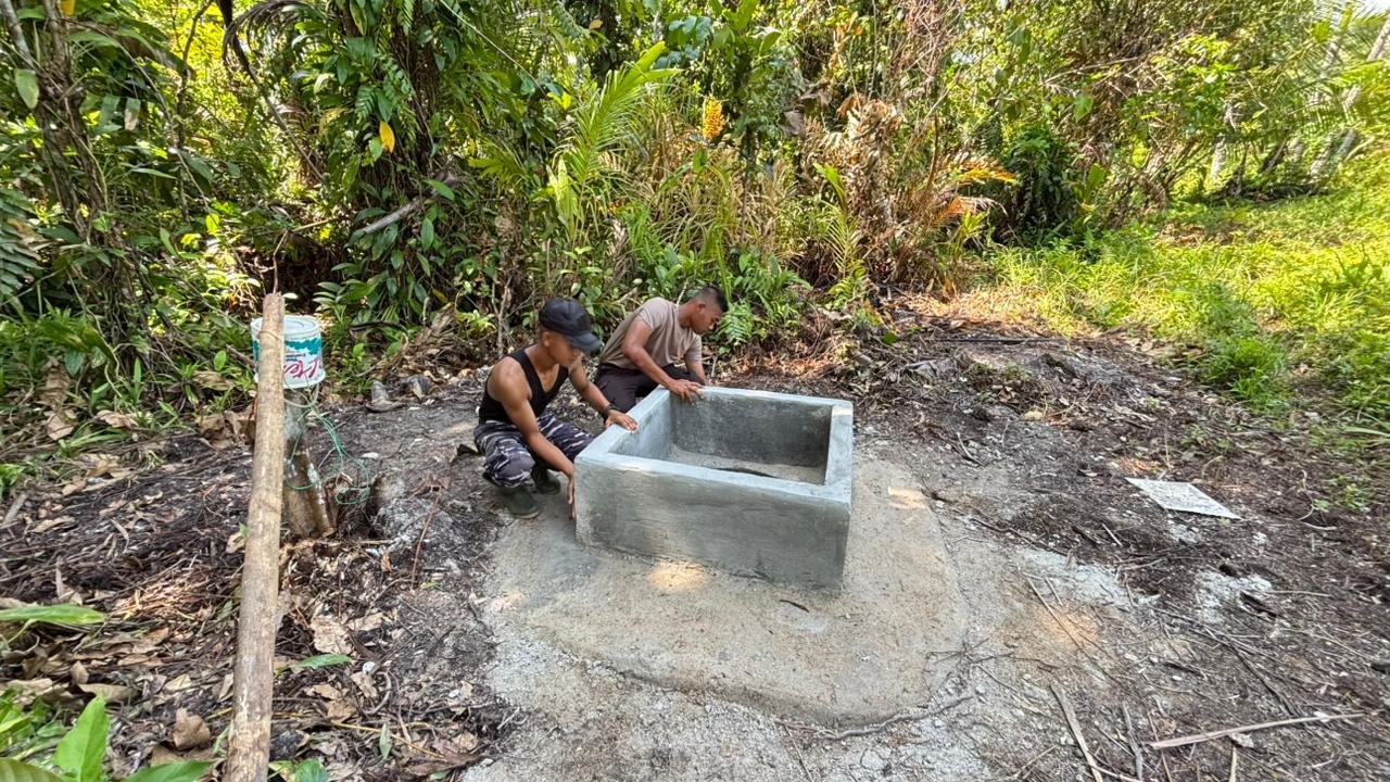 Kegiatan ini bertujuan untuk memperhalus dan meratakan lapisan dinding sumur sehingga hasil konstruksi lebih maksimal dan tahan lama. Sumur yang dikerjakan berada di depan rumah Ibu Evelina Surawi sebagai penerima manfaat program.