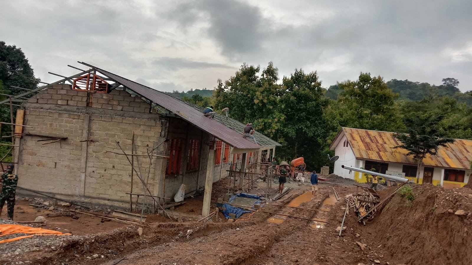 Sinergi TNI dan Warga Sunkaen, Pembangunan 4 RKB TMMD Ke-127 Capai Tahap Pemasangan Spandek