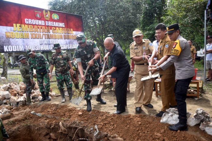 Sinergi TNI-Pemkab HSS: Ground Breaking Jembatan Perintis Garuda Via Vicon Bersama Pangdam XXII/Tambun Bungai