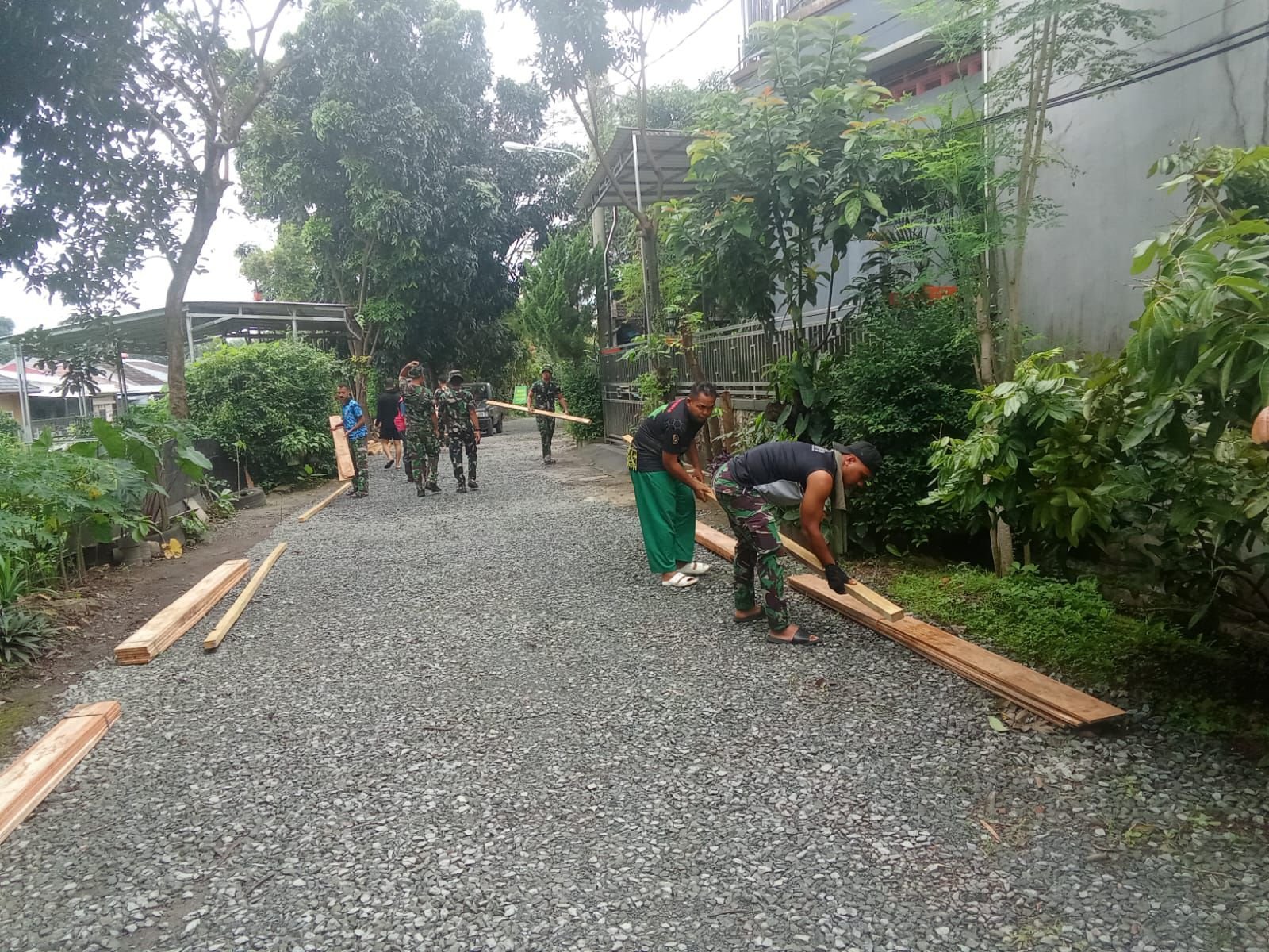 Sinergi TNI-Polri dan Warga, Pengerasan Jalan di Sukmajaya Terus Dikebut