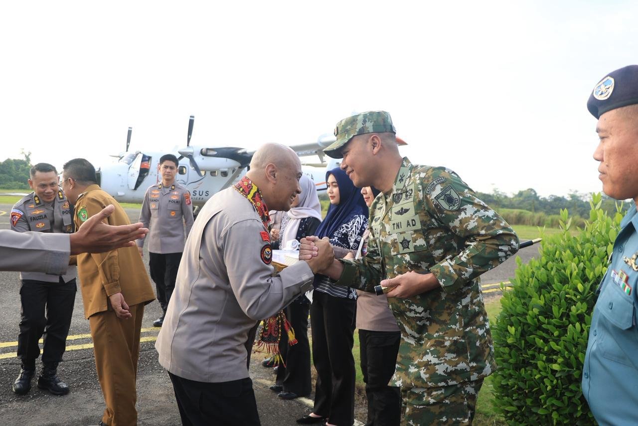 Penyambutan berlangsung dengan penuh keakraban serta tetap mengedepankan prosedur keamanan. Wakapolda Kaltim disambut langsung oleh Dandim 0909/Kutai Timur bersama jajaran FKPD yang terdiri dari unsur TNI, Polri, pemerintah daerah, serta instansi terkait lainnya.
