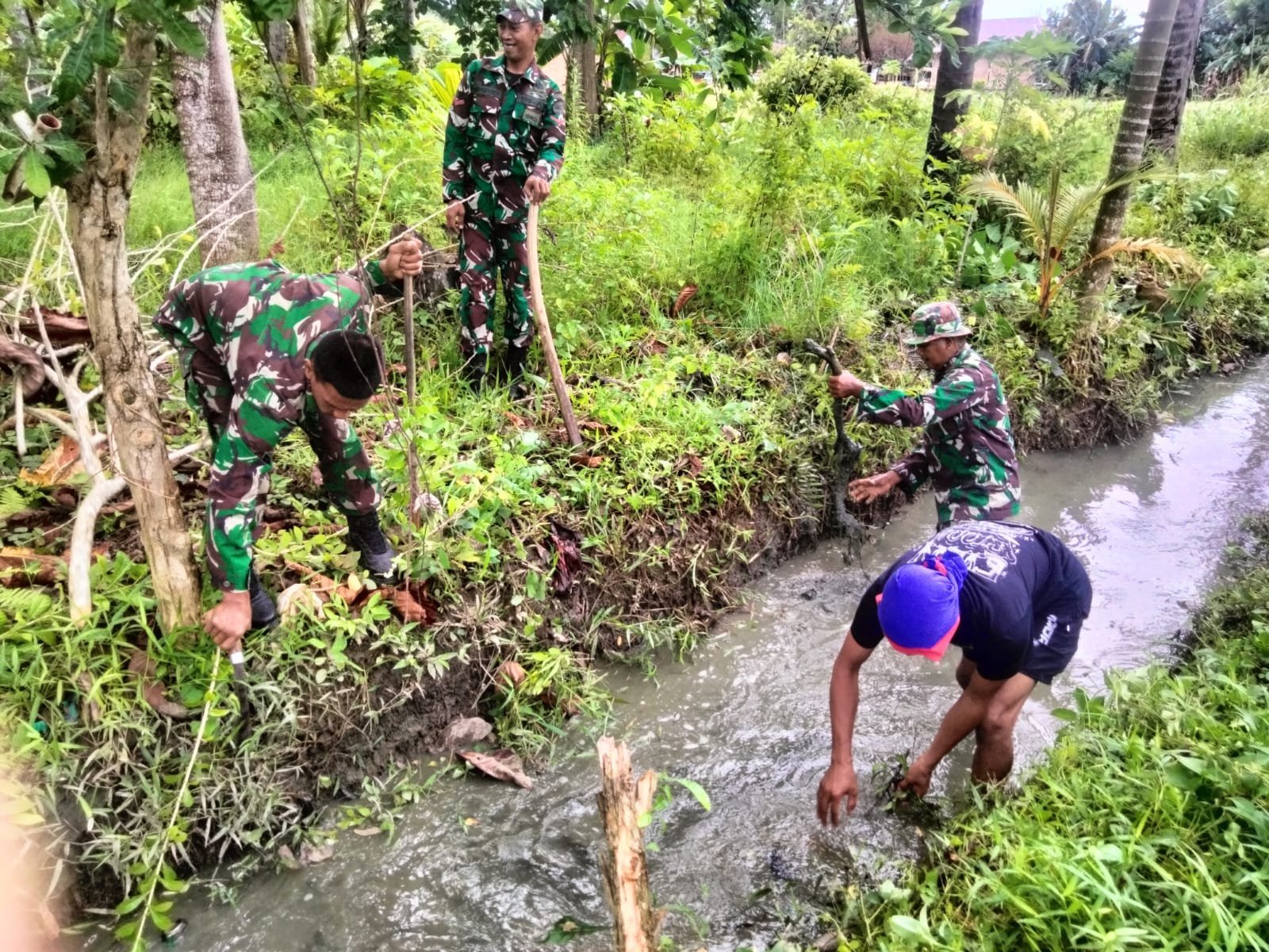 Klungkung,- Pjs Danramil 1610-03/Dawan Lettu Inf Ketut Joni didampingi Babinsa Pesinggahan Serka Made Juli Wardana mendampingi kegiatan penyaluran bantuan Sembako kepada warga terdampak bencana, Jumat ( 19/09/25 ).