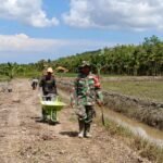 Dengan semangat gotong royong, personel TNI dan Polri bahu-membahu melakukan pengurugan jalan menggunakan alat sederhana seperti sekop dan cangkul. Jalan yang sedang dikerjakan ini menjadi salah satu sasaran utama dalam program fisik TMMD yang bertujuan membuka akses transportasi dan memperlancar mobilitas masyarakat di daerah tersebut.
