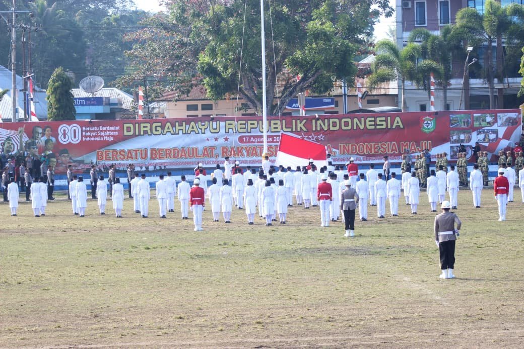 Kegiatan diikuti oleh sekitar 80 personel, terdiri dari para Perwira Staf, seluruh jajaran Danramil, anggota TNI, serta PNS Kodim 1614/Dompu. Upacara berlangsung khidmat dengan susunan acara yang diawali dari persiapan pasukan, laporan perwira upacara, penghormatan pasukan, hingga pengibaran Bendera Merah Putih diiringi lagu kebangsaan Indonesia Raya.