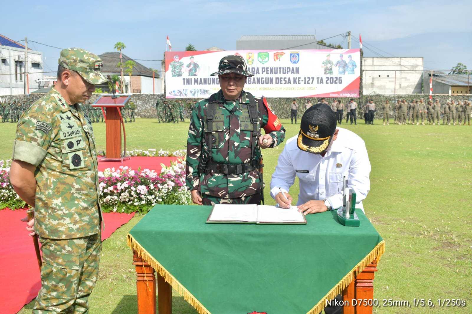 Mengusung tema “Dengan Semangat TMMD Satukan Langkah, Membangun Negeri Dari Desa”, program ini menjadi bukti nyata kolaborasi antara TNI, Pemerintah Daerah, dan masyarakat. Penutupan ditandai dengan penandatanganan naskah hasil pelaksanaan TMMD oleh Pangdam Jaya dan Walikota Depok, Dr. H. Supian Suri.