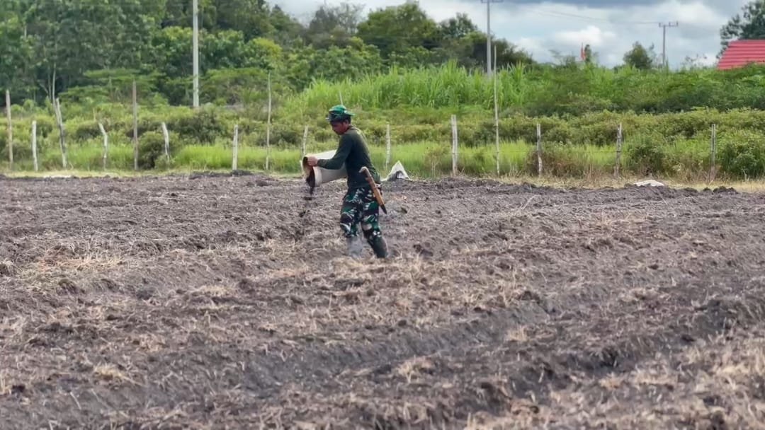 Barito Selatan – Dalam rangka mendukung program ketahanan pangan, anggota Satgas TMMD ke 124 Kodim 1012/Buntok melaksanakan kegiatan penaburan pupuk, bertempat di Lokasi Han Pangan, Jalan Urbanus Marcun, Sababillah, Kecamatan Dusun Selatan, Kabupaten Barito Selatan, Pada hari Minggu (11/05/2025)