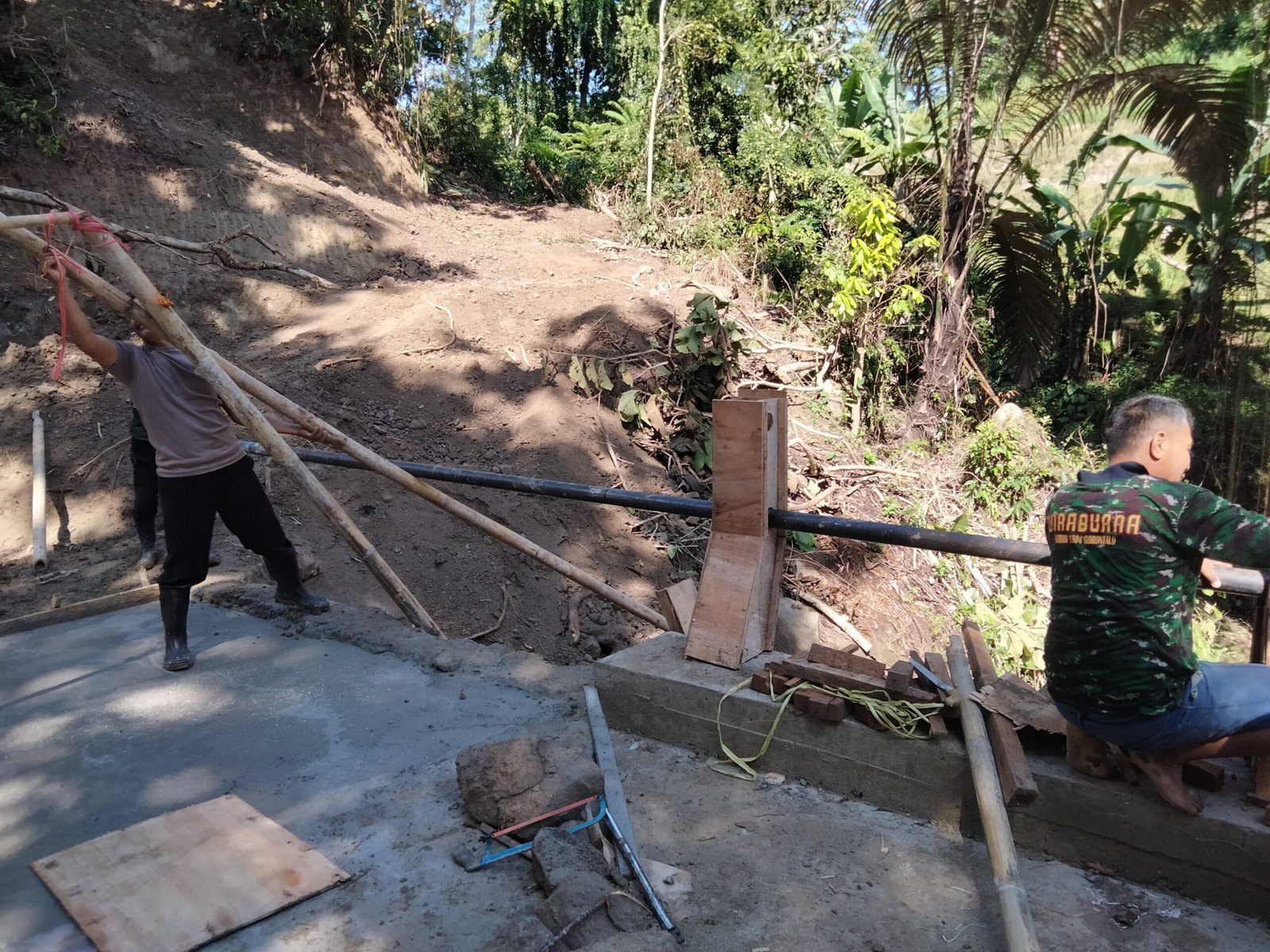 Sukamara – Satgas TMMD Reguler Ke 123 Kodim 1014/Pbn disela waktu istirahatnya membantu Ibu – Ibu membersihkan ikan di Desa Nibung Kecamatan Jelai Kabupaten Sukamara, (26/02).