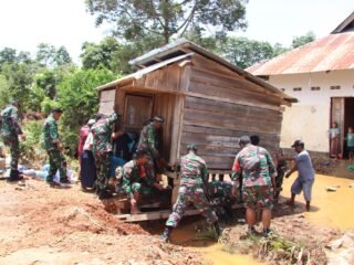 ACEH BARAT — Dalam upaya mempercepat masa tanam padi, Babinsa Koramil 04/Meureubo Kodim 0105/Aceh Barat, Kopka Darmawan, turun langsung ke sawah membantu petani mencabut bibit padi di Desa Ujong Drien, Kecamatan Meureubo, Selasa (23/12/2025).