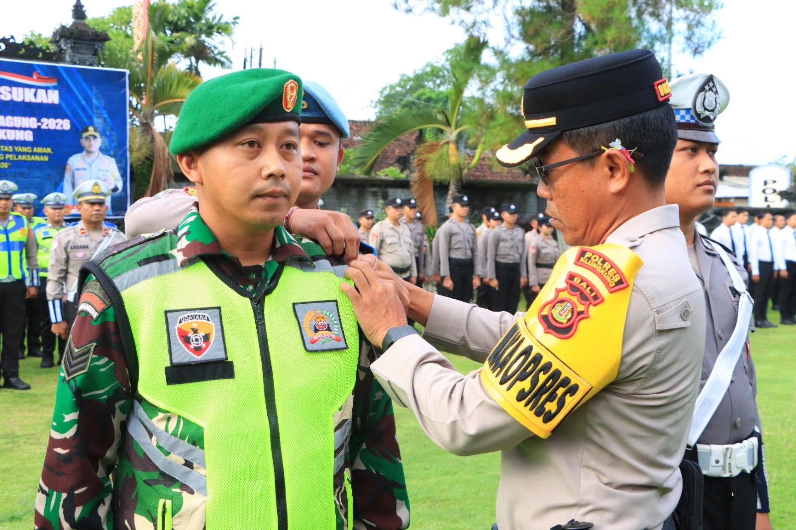 Klungkung, – Dalam rangka menjaga keamanan, keselamatan, ketertiban dan kelancaran lalu lintas (Kamseltibcarlantas), Kodim 1610/Klungkung dipimpin Pjs Pasilog Kapten Inf Abdul Mukhib turut serta dalam apel gelar pasukan Operasi keselamatan Agung Tahun 2026 yang dilaksanakan di Mapolres Klungkung pada Senin ( 02/02/26 ).