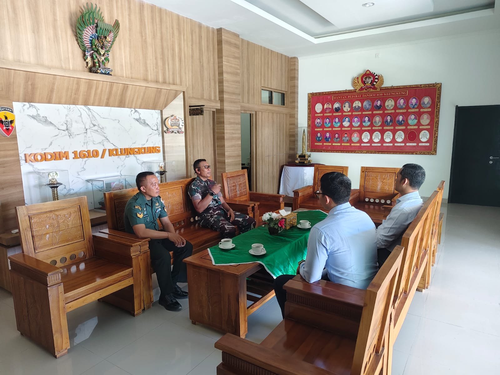 Klungkung,- Dandim 1610/Klungkung Letkol Kav Sidik Pramono, S. Sos., M.M., M.Han yang didampingi Juyar Kodim menerima audensi dari Pimpinan Kantor Cabang Badung Bank Jabar Banten (BJB) Bapak Pepi Siswhar Ismail beserta anggota di Makodim 1610/Klungkung, Rabu ( 15/04/26 ).