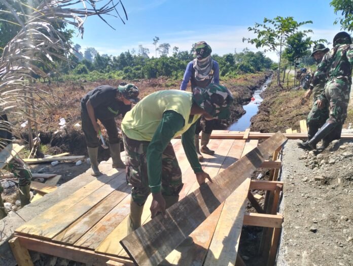 Nabire – Semangat dan dedikasi terus ditunjukkan oleh Prajurit Kodim 1705/Nabire dalam proses pembangunan jembatan yang menjadi harapan masyarakat. Hingga saat ini, progres pekerjaan terus mengalami peningkatan hingga 40% seiring dengan kerja keras personel di lapangan bersama dukungan warga sekitar.