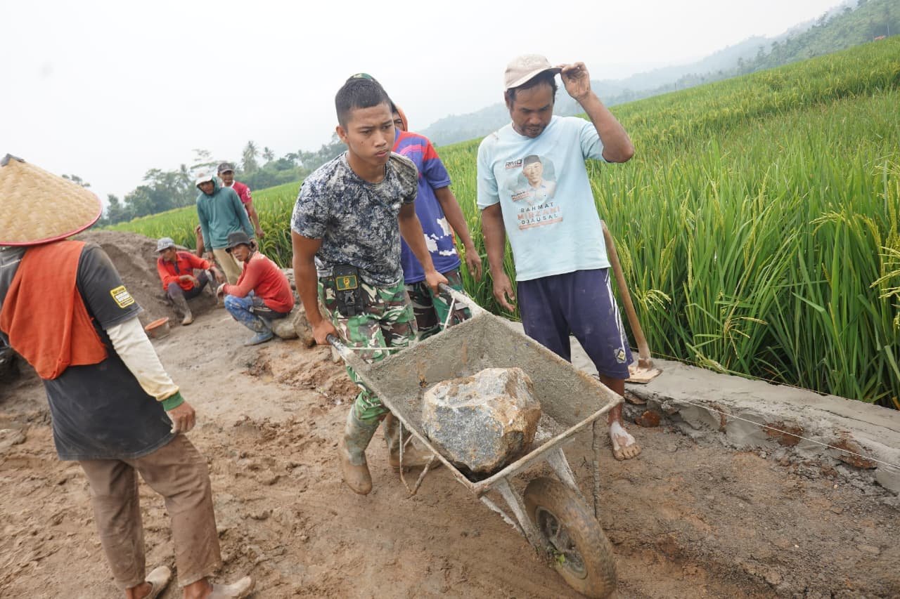 Kab Pesawaran – Anggota Satgas TMMD 127 Kodim 0421/LS di Kab Pesawaran tidak mengenal hari libur. Mereka terus bekerja keras untuk menyelesaikan semua sasaran pembangunan dengan target 100% selesai.