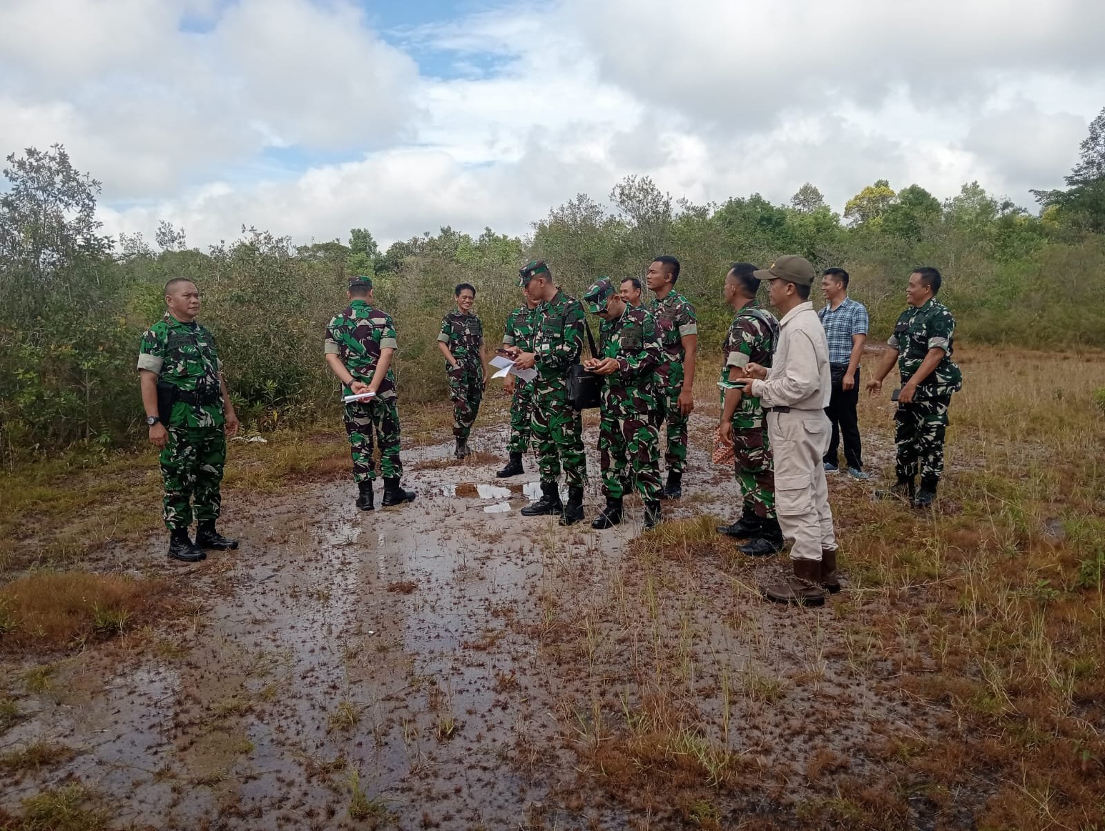 Tim Survei Rencana Konstruksi Satuan (Rentuksat) yang di pimpin oleh Letkol Czi Denny, Lettu Inf Ginda, dan turut di didampingi Kasilog Korem 102/Pjg Kolonel Inf Fitriani, Pasi Intel Kodim 1015/Sampit, Pasi Logistik Kodim 1015/Sampit, Danzibang dan pendamping lainnya.