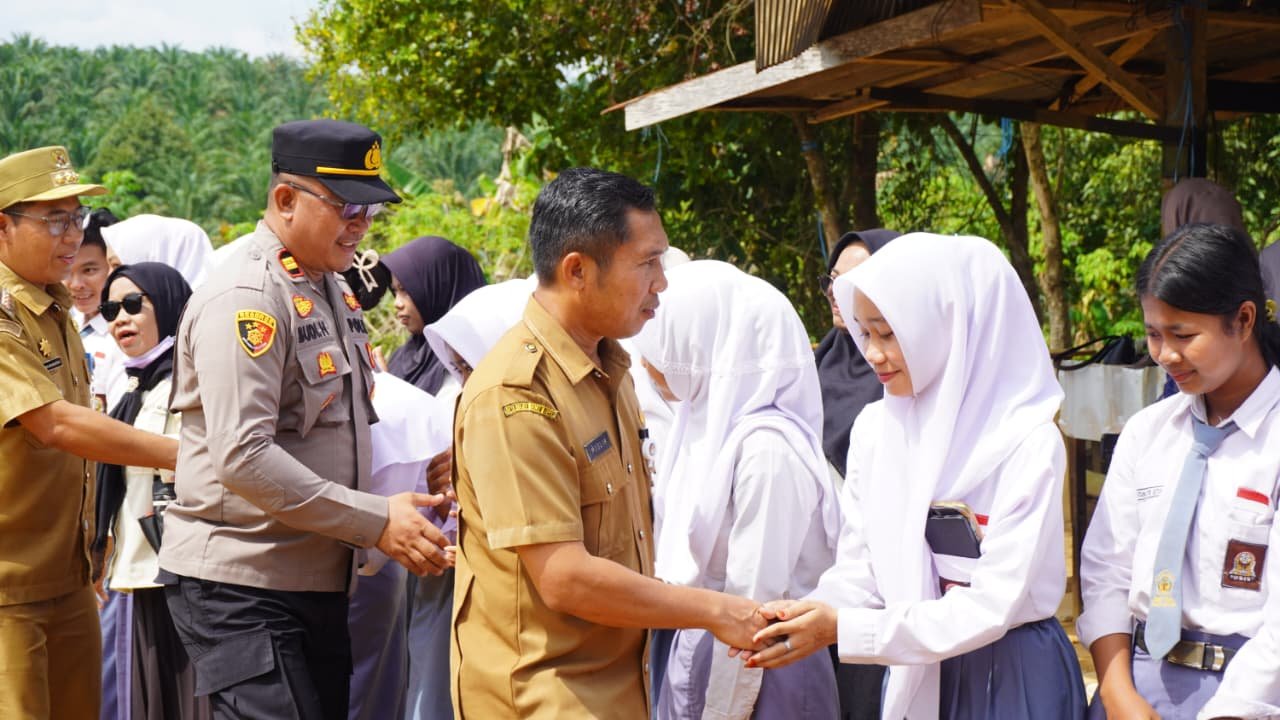 Rombongan yang dipimpin oleh Totok Sulistiyono disambut meriah oleh puluhan siswa-siswi SMA Negeri PGRI Telaga Antang. Dengan penuh semangat, para pelajar memberikan sambutan sebagai bentuk dukungan terhadap pelaksanaan TMMD Reguler ke-127 Tahun Anggaran 2026 yang digelar Kodim 1015/Sampit.