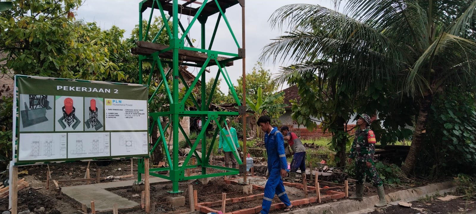 Kab Pesawaran – Titik sumur bor di Desa Tanjung Rejo, milik Ibu Rumiani, telah mencapai tahap pemasangan tiang tower. Kegiatan ini merupakan bagian dari program TNI Manunggal Membangun Desa (TMMD) Ke 127 Kodim 0421/LS.
