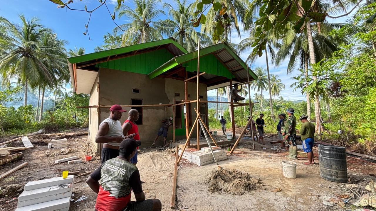 Pengerjaan rumah dilakukan secara bertahap dengan mengedepankan kualitas bangunan agar dapat dimanfaatkan dalam jangka panjang. Personel Satgas bersama warga bekerja tanpa mengenal lelah demi percepatan pembangunan.