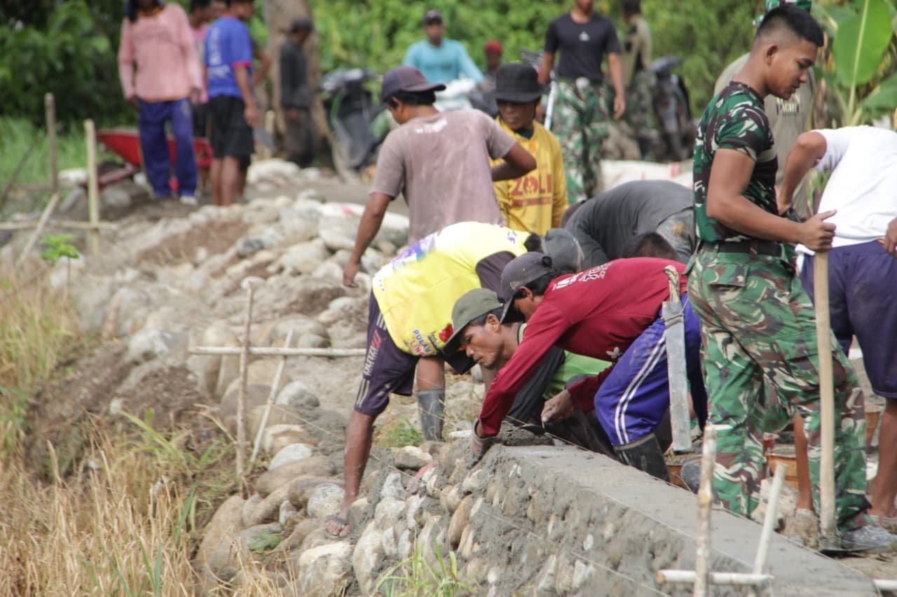 Antusiasme masyarakat terlihat dari partisipasi aktif warga yang turut membantu proses pembangunan. Kebersamaan antara Satgas TMMD dan warga menjadi kunci percepatan penyelesaian sasaran fisik ini.