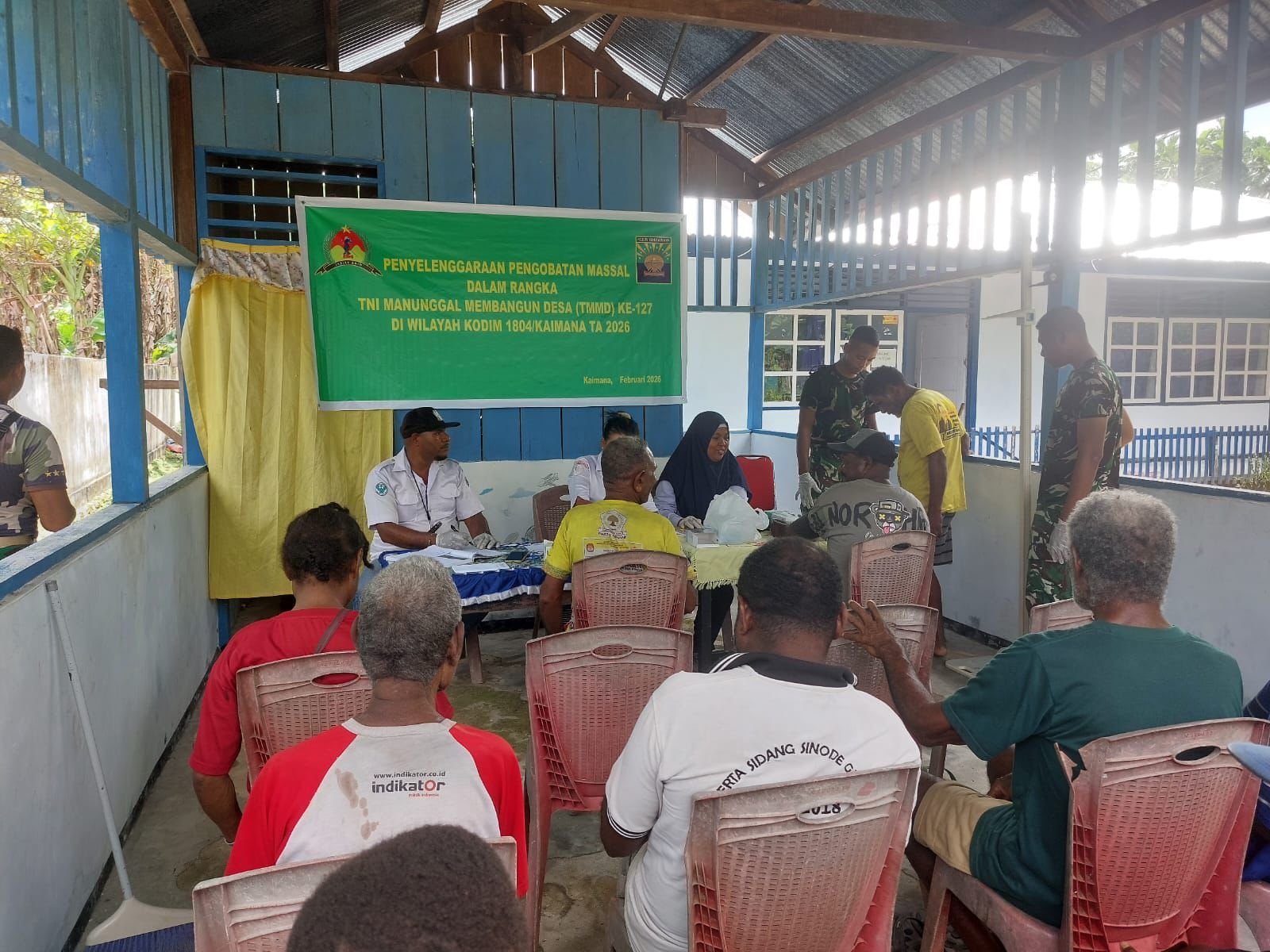 Kaimana – Program TMMD 127 Kodim 1804/Kaimana tidak hanya fokus pada pembangunan fisik, tetapi juga menyentuh aspek sosial melalui kegiatan non fisik berupa pengobatan massal yang digelar pada Kamis (27/02/2026).
