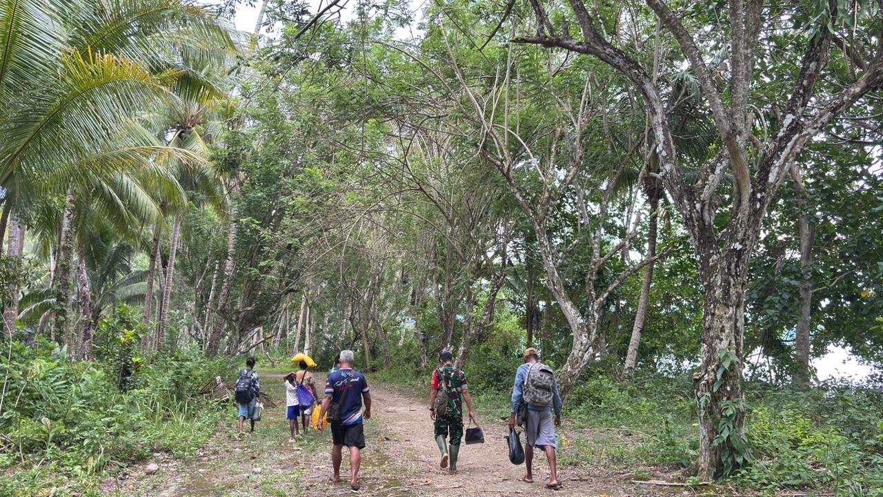 Terlihat Dandim 1804/Kaimana menjalin komunikasi hangat dengan masyarakat Kampung Sisir. Suasana santai dan penuh kekeluargaan tercipta saat berbincang mengenai perkembangan kegiatan TMMD.