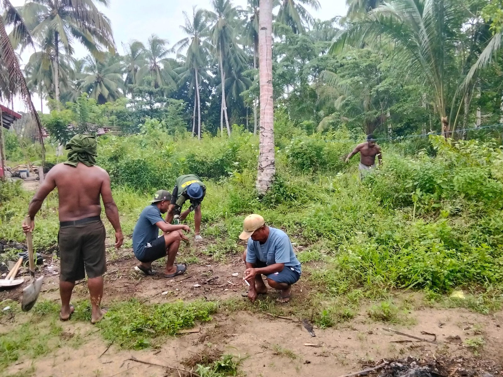 Personel Satgas bersama masyarakat mulai menyiapkan lokasi pembangunan serta material yang dibutuhkan. Proses pengerjaan dilakukan secara gotong royong dengan penuh semangat kebersamaan.