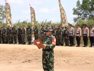 Personel Satgas bersama masyarakat mulai menyiapkan lokasi pembangunan serta material yang dibutuhkan. Proses pengerjaan dilakukan secara gotong royong dengan penuh semangat kebersamaan.