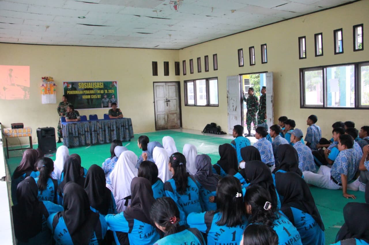 Kegiatan sosialisasi ini dilaksanakan sebagai upaya memberikan informasi dan pemahaman kepada para siswa mengenai peluang bergabung menjadi prajurit TNI AD serta menumbuhkan semangat bela negara di kalangan generasi muda.