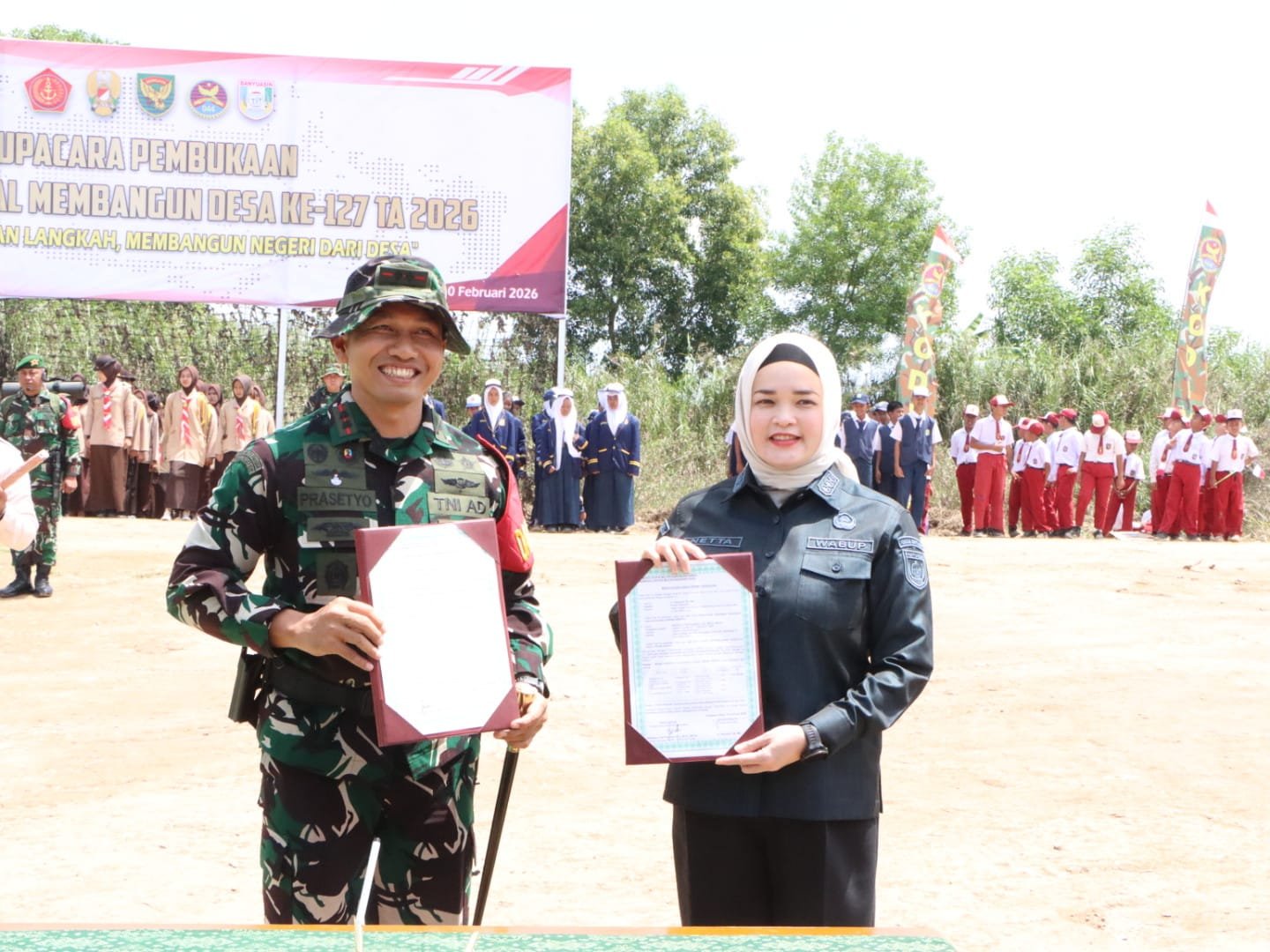 Banyuasin – Upacara pembukaan TNI Manunggal Membangun Desa (TMMD) Ke-127 Tahun Anggaran 2026 Kodim 0430/Banyuasin resmi dilaksanakan pada Selasa, 10 Februari 2026 pukul 10.30 WIB. Kegiatan ini berlangsung di Desa Wonosari, Kecamatan Pulau Rimau, Kabupaten Banyuasin, Sumatera Selatan. Pembukaan program tersebut dipimpin langsung oleh Wakil Bupati Banyuasin, Netta Indian, S.P.