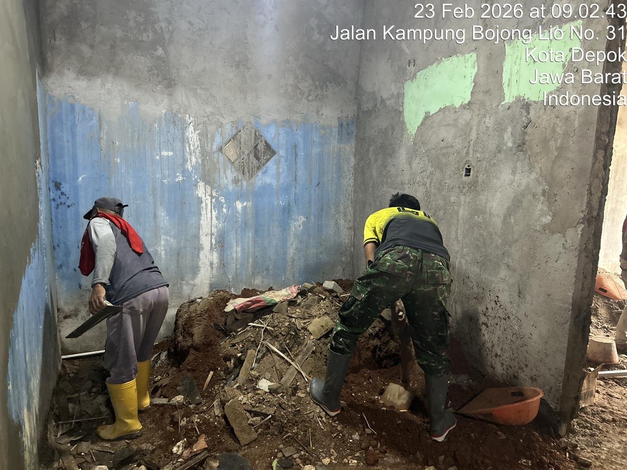 Depok – Kepedulian TNI terhadap kesejahteraan masyarakat kembali diwujudkan melalui program RTLH dalam TMMD Ke-127 TA 2026 Kodim 0508/Depok. Salah satu penerima manfaat adalah Ujang Fadilah, warga Kelurahan Sukamaju, Kecamatan Cilodong, yang rumahnya kini tengah direhabilitasi.