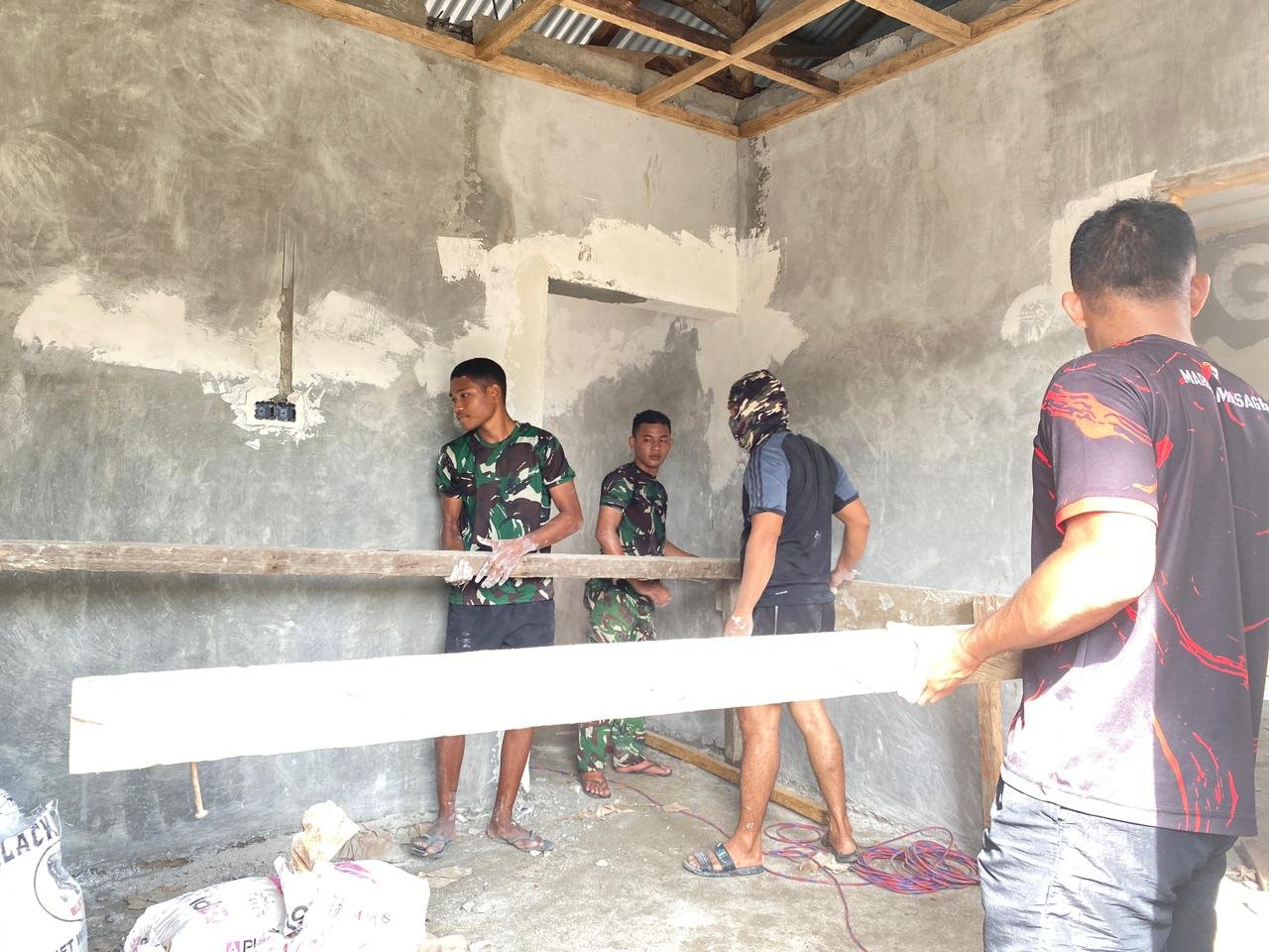 Dalam pengerjaan hari ini, personel Satgas melaksanakan perapihan bagian dalam rumah serta pemasangan bagian struktur pendukung. Setiap pekerjaan dilakukan secara teliti untuk memastikan hasil yang maksimal.