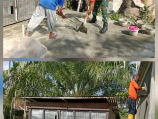 Pesawaran — Program TNI Manunggal Membangun Desa (TMMD) yang dilaksanakan oleh Kodim 0421/Lampung Selatan terus berlanjut dengan mengerjakan pembangunan rabat beton dan talud di Desa Tanjung Rejo.