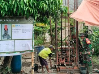 Rumah penerima manfaat atas nama Bpk Suhono dikerjakan secara gotong royong oleh personel TNI bersama masyarakat setempat sebagai upaya meningkatkan kualitas hunian warga melalui program TMMD.