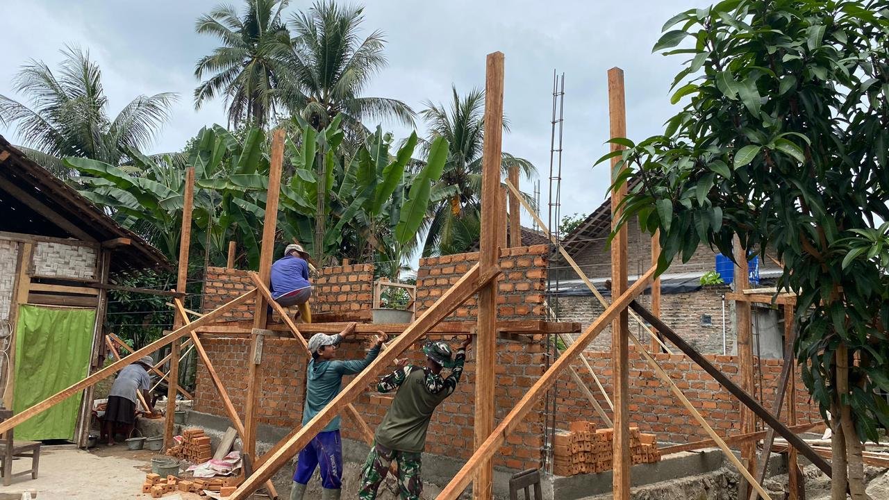 TMMD Kodim 0421/LS Lanjutkan Rehab RTLH Bpk Khoirul Anwar, Masuk Tahap Pemasangan Batu Bata