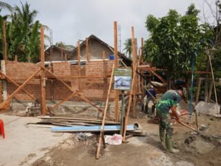 Pesawaran — Program TNI Manunggal Membangun Desa (TMMD) yang dilaksanakan oleh Kodim 0421/Lampung Selatan terus menunjukkan progres positif. Kegiatan rehabilitasi Rumah Tidak Layak Huni (RTLH) milik Ibu Siti Hamdiah di Desa Tanjung Rejo, Kecamatan Way Khilau, Kabupaten Pesawaran kini telah memasuki tahap pemasangan batu bata serta kusen pintu dan jendela.