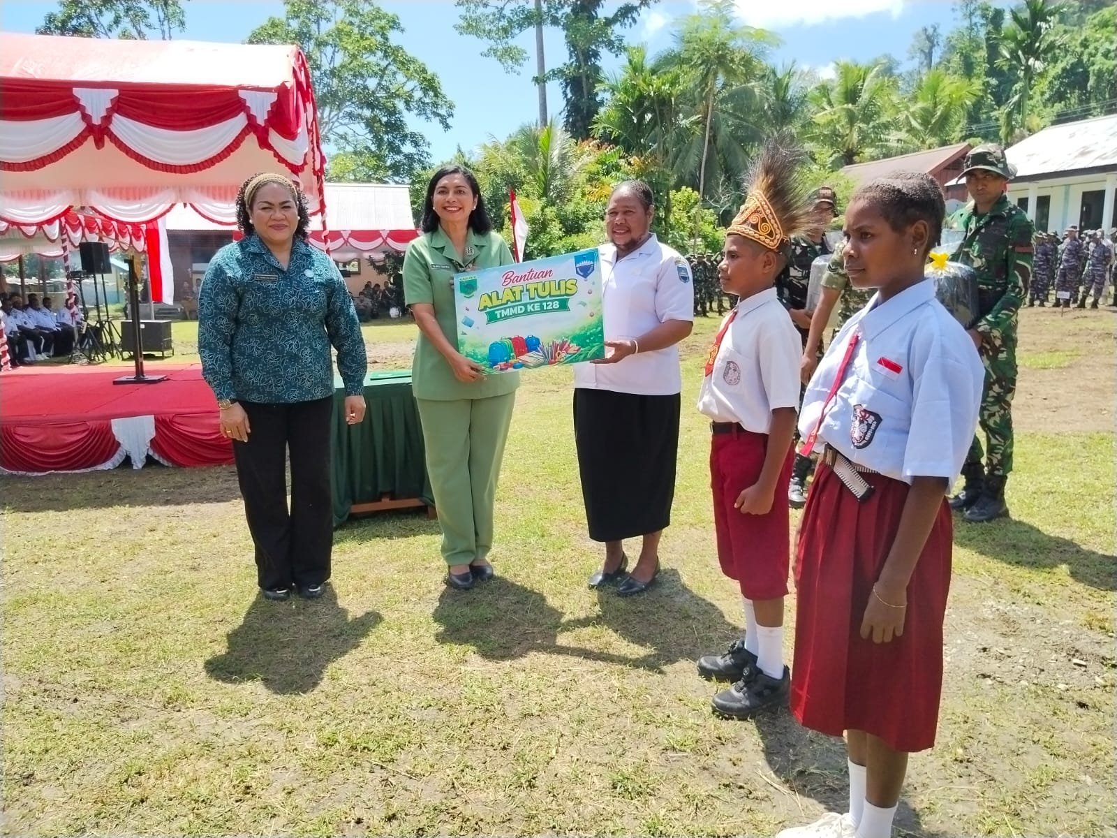 Manokwari, 22 April 2026 — Kepedulian terhadap pendidikan ditunjukkan Kodim 1801/Manokwari melalui TMMD Ke-128 dengan memberikan bantuan kepada anak sekolah.