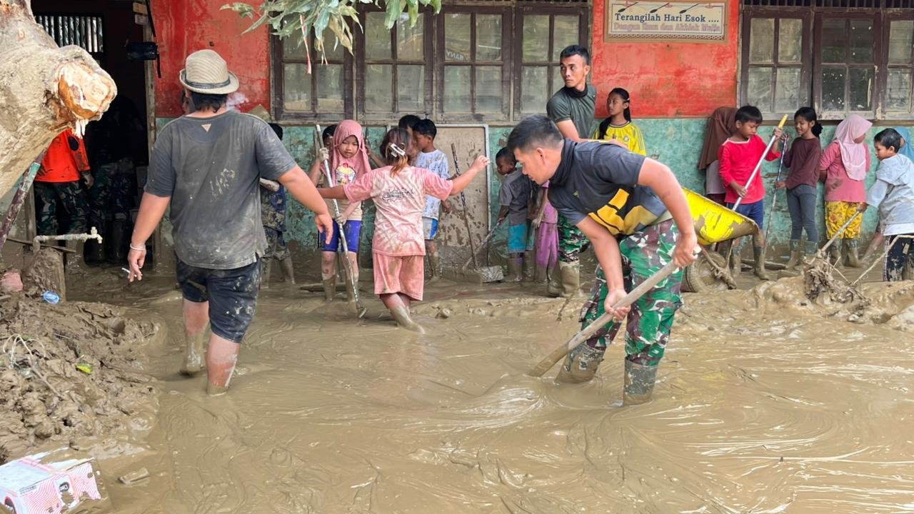 Banjir yang melanda beberapa wilayah di Aceh Tamiang mengakibatkan sejumlah fasilitas pendidikan terendam lumpur dan dipenuhi sampah, sehingga mengganggu proses belajar mengajar. Menyikapi kondisi tersebut, para prajurit TNI AD turun langsung ke lokasi untuk membantu membersihkan ruang kelas, halaman sekolah, serta fasilitas penunjang lainnya.