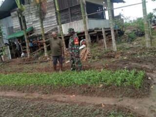 “Melalui kegiatan gotong royong ini, kita ciptakan jalan yang aman bagi warga dan sekaligus memperkuat persatuan antara TNI dan rakyat,” ujarnya.
