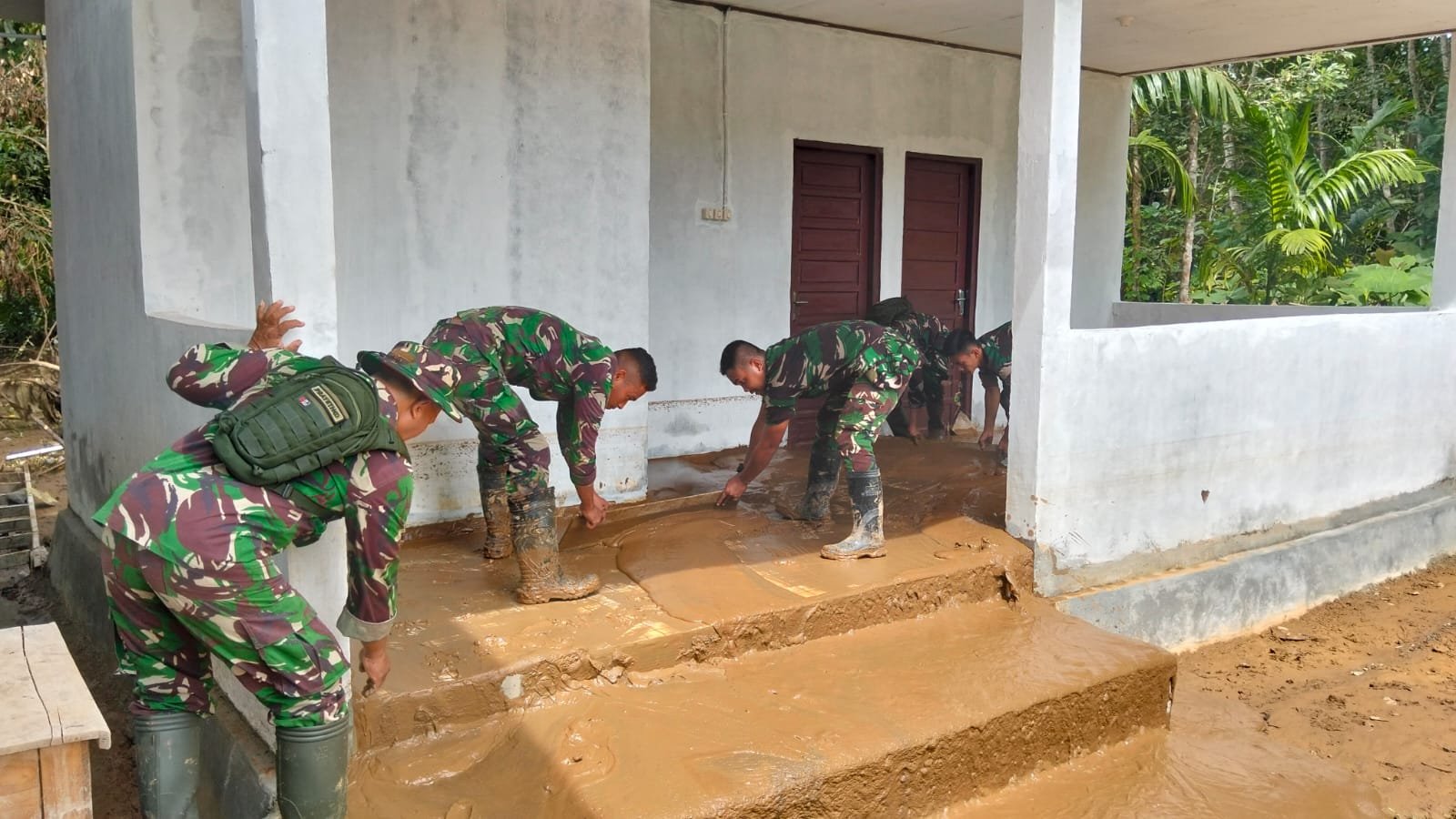 Kegiatan pembersihan difokuskan pada rumah warga, fasilitas umum, serta akses jalan yang tertutup lumpur dan material sisa banjir. Personel TNI bahu-membahu dengan relawan membersihkan sisa lumpur, sampah, dan kayu yang terbawa arus banjir guna mempercepat pemulihan lingkungan.
