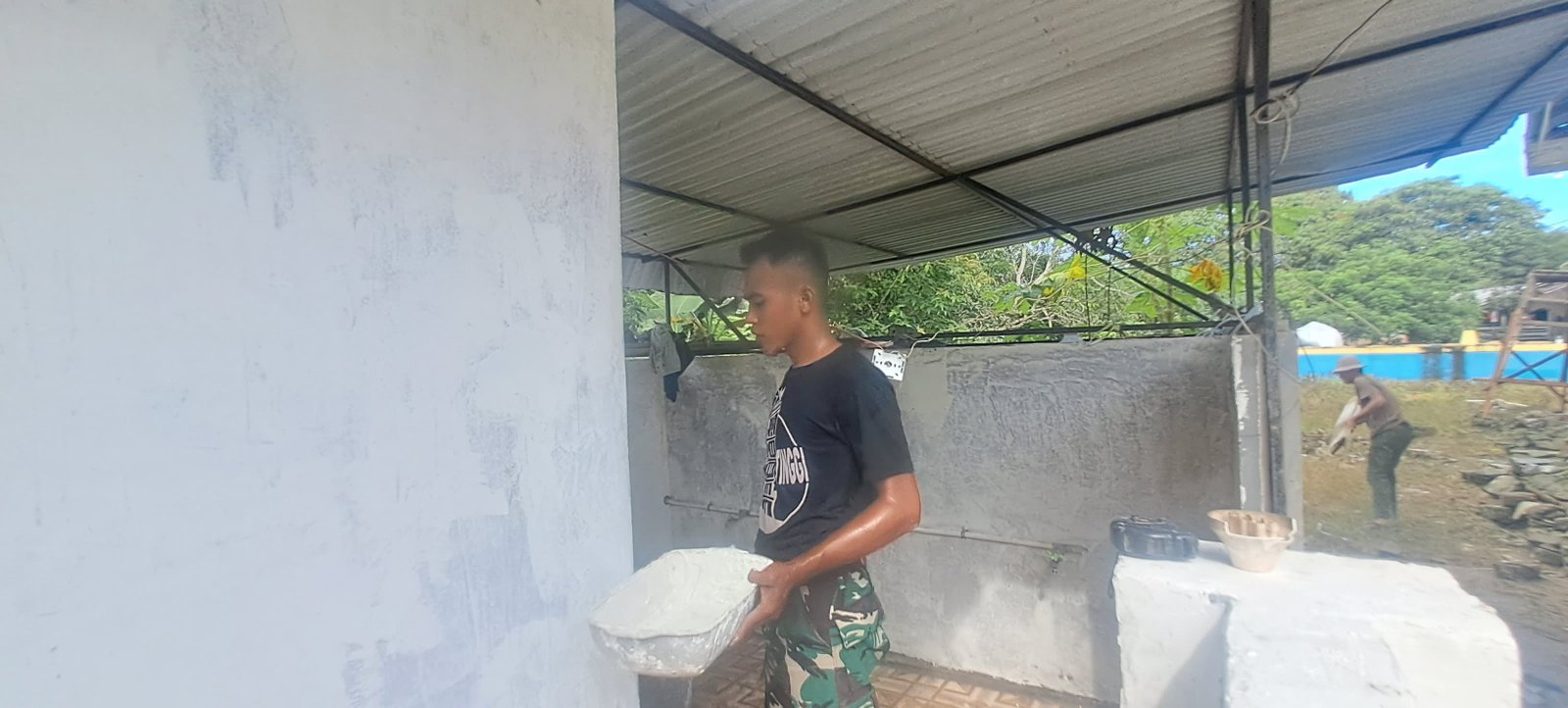Serda Rusdi A.K. Latuheru, salah seorang anggota Satgas TMMD yang terlibat langsung dalam proses pengerjaan, menjelaskan bahwa tahapan plamir ini merupakan langkah krusial dan mendasar dalam proses penyempurnaan bangunan. “Plamir ini adalah tahap dasar sebelum nantinya bangunan ini benar-benar siap untuk dicat,” ujar Serda Rusdi.
