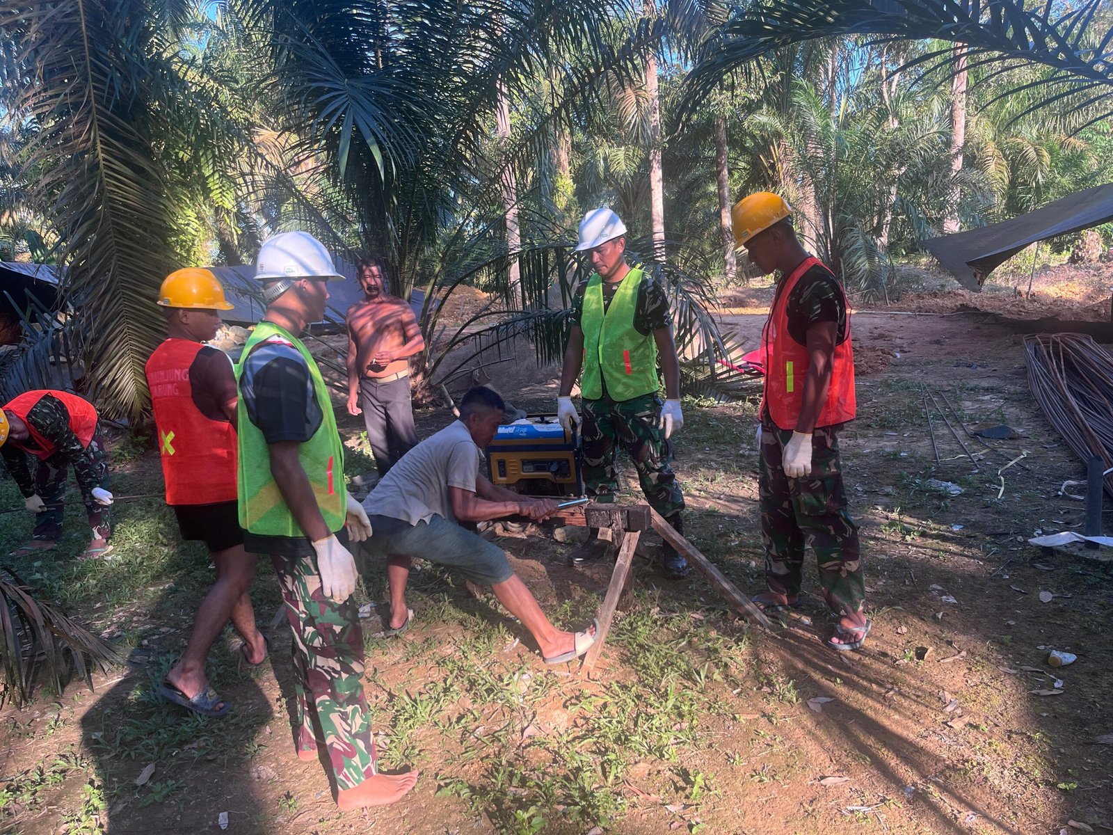 Terlihat di lapangan, personel TNI bersama warga bahu-membahu mencari dan menyiapkan kayu balokan yang akan digunakan sebagai tambahan cerucuk atau pondasi jembatan. Upaya ini menjadi bagian penting dalam memperkuat struktur dasar pembangunan agar lebih kokoh dan tahan lama.