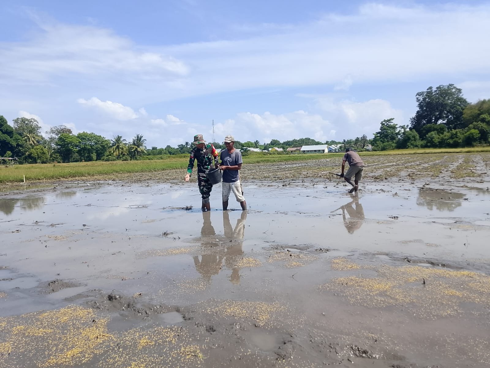 Kegiatan pendampingan tersebut berlangsung dengan penuh kebersamaan dan gotong royong. Kehadiran Babinsa di tengah-tengah petani menjadi bukti bahwa TNI tidak hanya bertugas menjaga keamanan, tetapi juga berperan aktif dalam mendukung kesejahteraan masyarakat, khususnya di sektor pertanian.