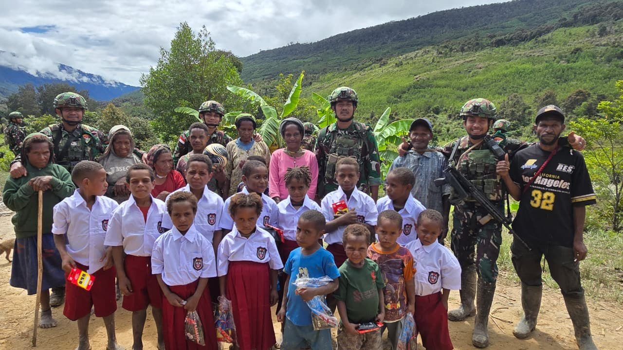 Alutbakon, Pegunungan Bintang — Pos Oksop Satgas Swasembada Yonif 751/Vira Jaya Sakti (VJS) melaksanakan kegiatan anjangsana ke Kampung Alutbakon sebagai wujud pembinaan teritorial yang humanis, sekaligus mendekatkan pelayanan dasar kepada masyarakat perbatasan. Kegiatan ini meliputi pembagian bola untuk bermain anak-anak, penyerahan perlengkapan sekolah dan seragam baru, serta pelayanan pengobatan bagi warga yang mengalami keluhan kesehatan. (Selasa,17/3/2026).