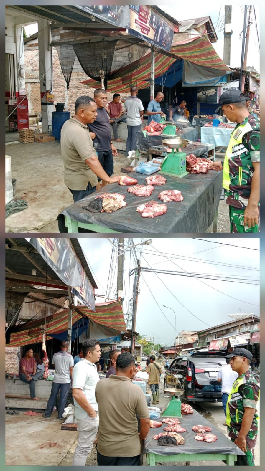 Tradisi Meugang, Babinsa Koramil 02/Woyla Pantau Harga Daging di Pajak Wilayah Binaan