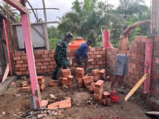 Kami selalu berusaha hadir di tengah warga binaan dalam berbagai aspek, termasuk membantu masyarakat untuk membantu warga binaannya membangun rumah tempat tinggal yang lebih nyaman dan aman” Ujar Babinsa.