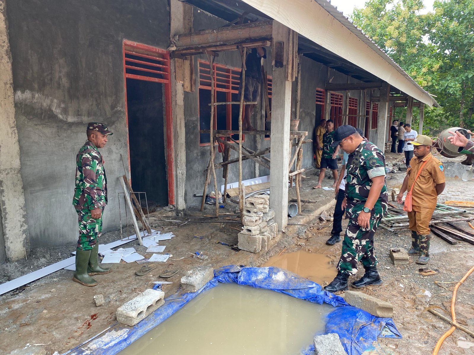 Didampingi para perwira staf, Dandim mengevaluasi progres fisik secara menyeluruh. Ia memastikan setiap sudut bangunan dikerjakan dengan teliti dan tidak mengabaikan aspek keamanan serta kenyamanan.