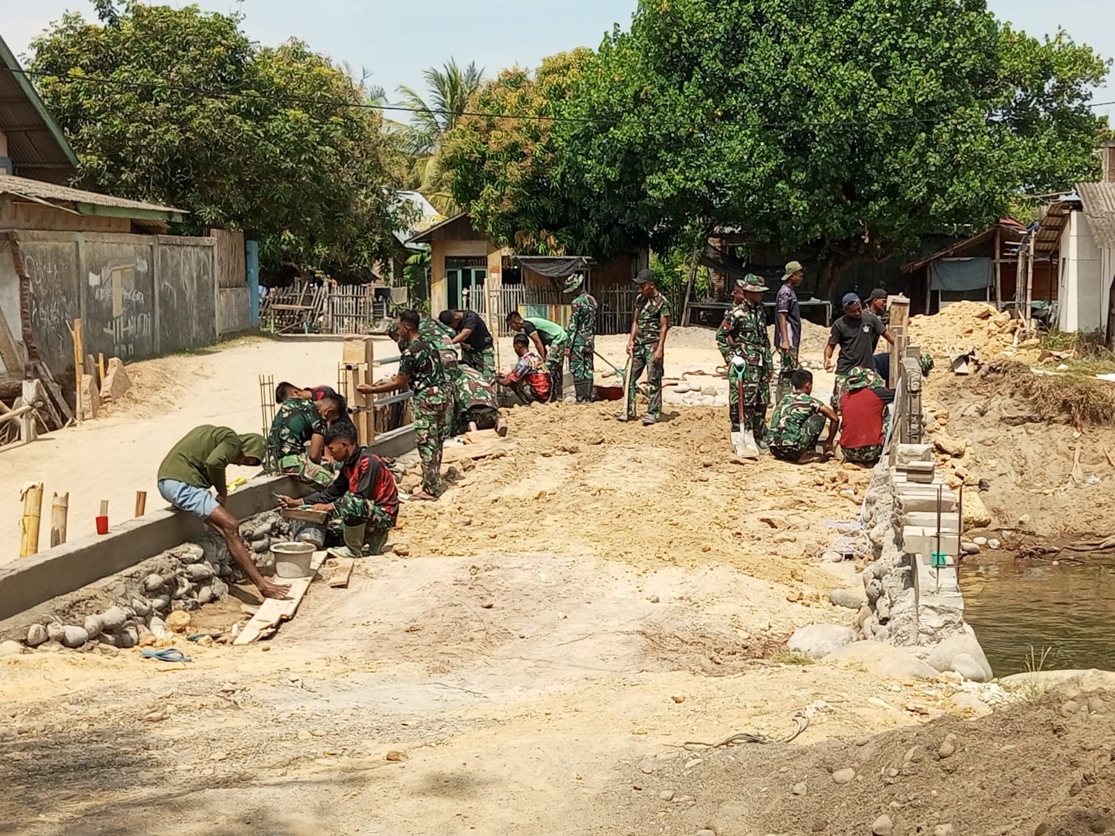 Dengan semangat gotong royong antara TNI dan masyarakat, pembangunan Jembatan Aramco diharapkan segera rampung sehingga mobilitas warga, distribusi hasil pertanian, serta roda perekonomian masyarakat di wilayah Kecamatan Dewantara dapat kembali berjalan lancar.
