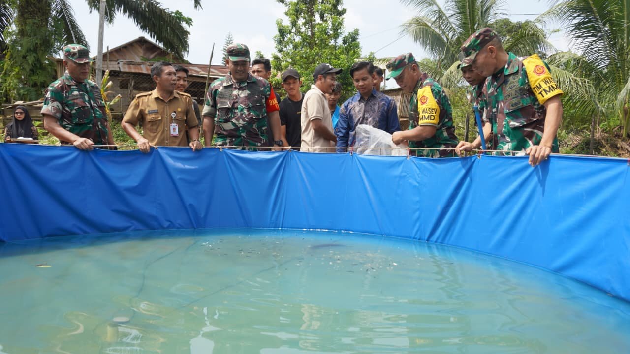 Kotawaringin Timur – Program penebaran bibit ikan nila dalam rangka TMMD ke-127 Kodim 1015/Sampit mendapat apresiasi dari pemerintah daerah dan masyarakat Desa Tri Buana.