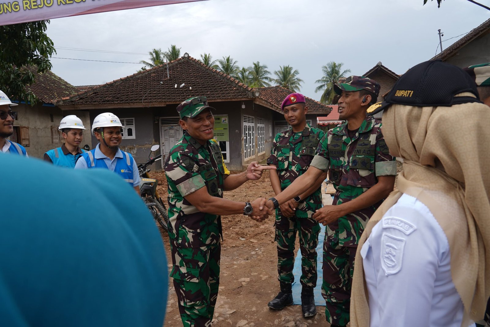 Pesawaran – Waster Panglima TNI, Brigjen TNI (Mar) Bambang Hadi Suseno, dan Aster Kasdam XXI/RI, Kolonel Inf Anang, menyatakan bangga atas keberhasilan pelaksanaan TMMD ke-127 Kodim 0421/LS di Desa Tanjung Rejo, Kecamatan Way Khilau, Kabupaten Pesawaran.