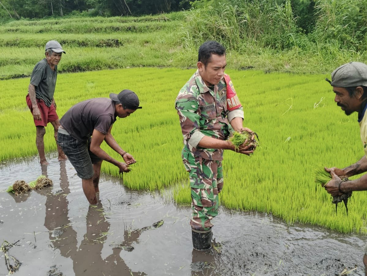 Wujud Kebersamaan, Babinsa Koramil 03/Katikutana Turun ke Sawah Bantu Petani