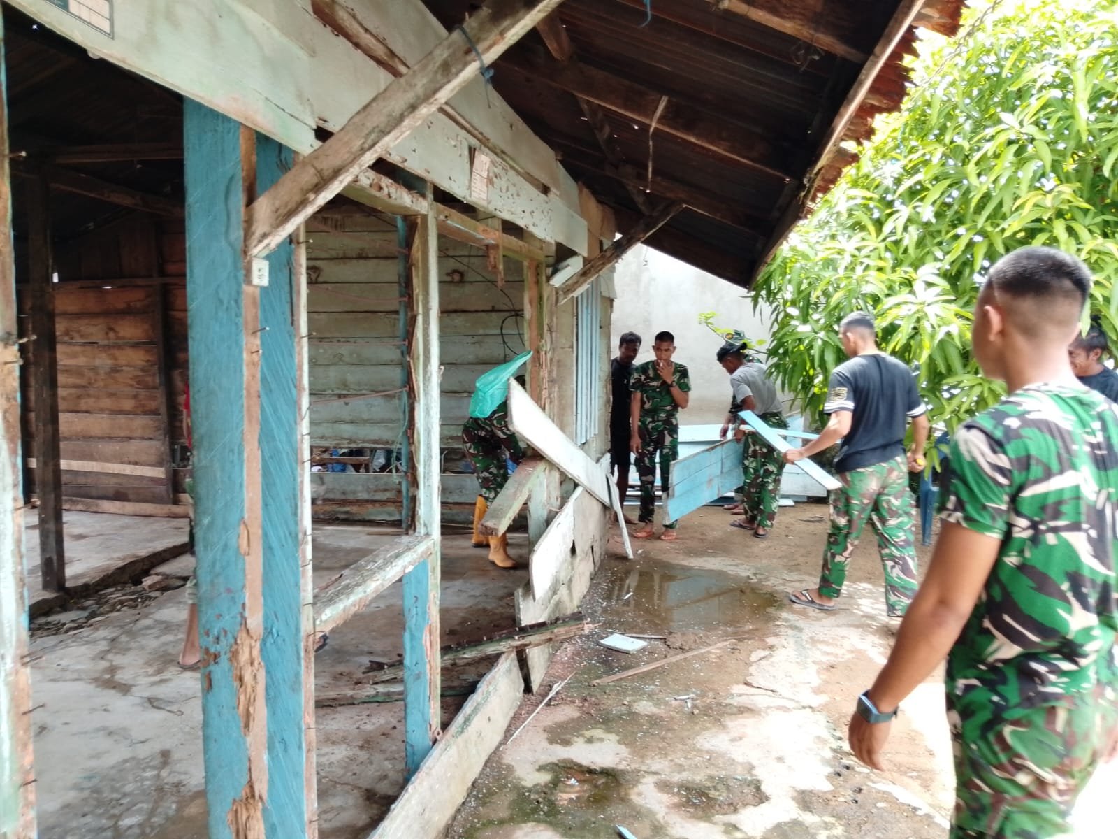 Kegiatan tersebut merupakan bagian dari upaya TNI dalam membantu masyarakat kurang mampu agar memiliki hunian yang lebih layak, sehat, dan aman. Proses pembongkaran dilakukan secara gotong royong oleh personel Satgas TMMD bersama warga sekitar yang turut memberikan dukungan tenaga.